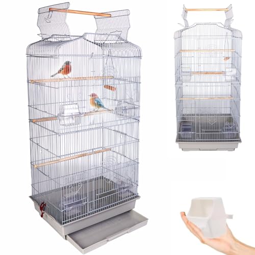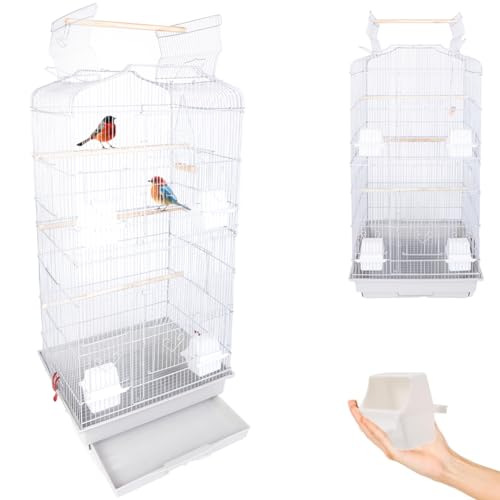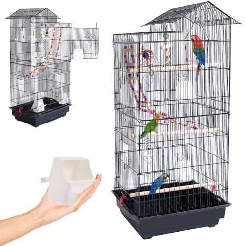 BAKAJI Cage volière pour Oiseaux, perroquets inséparables, perruches, volatiles, en métal avec Toit ouvrant et mangeoires, perroquets en Bois, Cage avec bac Amovible pour Nettoyage Facile