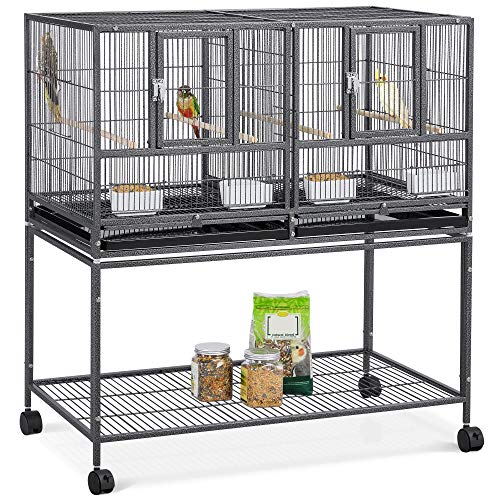 Yaheetech Cage d'elevage pour Oiseaux avec Deux Espaces Divisés Cage pour Petit Oiseaux Exotiques Canaris Madarin Perruche avec Mangeoires Perchoirs 2 Portes Support Roulant 95 x 45 x 105 cm