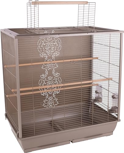 Flamingo Cage pour Perruche Ibis Taupe - 81x21x68cm - Cage pour Oiseaux - 4 Portes à charnières - Tiroirs en Plastique extractibles