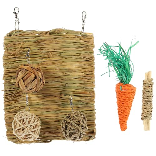 PartyKindom 4 pièces Lot de Boules à Mâcher en Herbe pour Petits Animaux de Soin Dentaire et Légères pour Cages de Rongeurs et Friandises