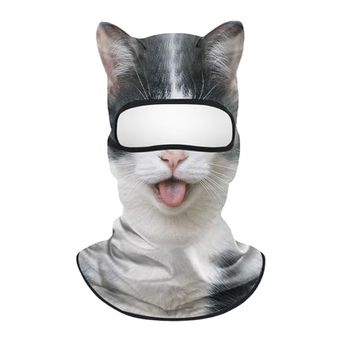 QJDFLL Cagoule Moto Homme et Femme Visage de Chat 3D en Soie glacée avec Oreilles pour activités Plein air comme Les Festivals Musique, Rave Parties, Le Ski, fêtes d Halloween(Grey,Taille Unique)