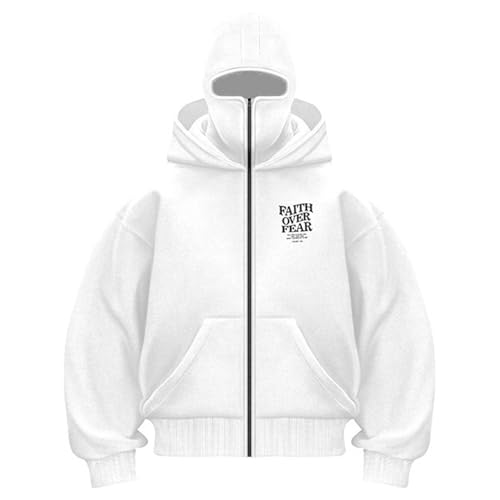Bastwahl Hoodie Homme Femme Zippé - Cagoule Pull Balaclava Sweats à Capuche Polaire Uni Y2K Hoodie Grande Taille Sweatshirts Coupe Vent Veste mi Saison Masque Vélo Moto Manteau Blouson Hiver Chaud