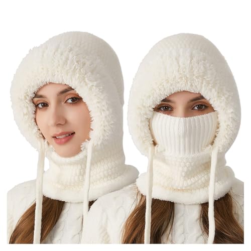 Bonnet Femme Homme, Cagoule Femme Polaire Hat 3 en 1 Chaude Bonnet Bonnets Cagoules Laine Ski Chapeau Cape Tour De Cou Hiver Ajustable d'oreilles avec Écharpe et Masque Chaud