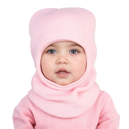 Hiver Chapeau Bonnet Écharpe pour Bébé Enfants,Cagoule Bébé Fille Garçon Mignon Bonnet Echarpe Hiver Chaud Cache Oreilles Chapeaux Tricoté Enfant Double Pompon Cagoule Balaclava pour Ski Snowboard