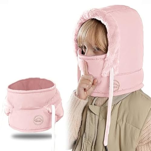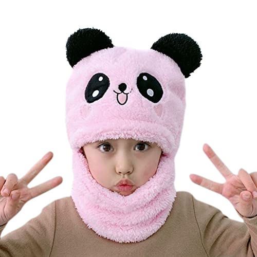 NLAND 3 in 1 Mignon Bébé Bonnet Echarpe Set Hiver Chaud Cagoule en Peluche Garçons Filles Epais Balaclava pour Outdoor Cyclisme Ski,Rose