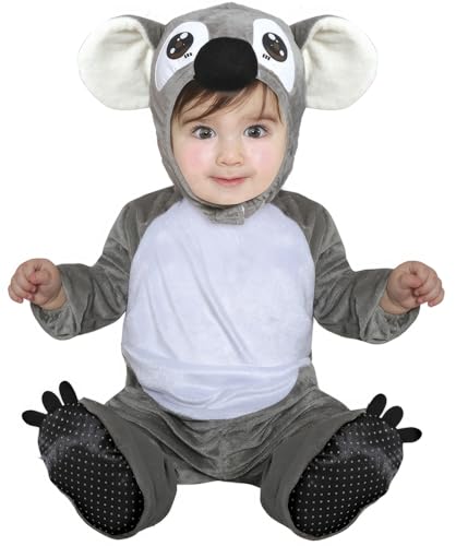 FIESTAS GUIRCA | Costume de Koala Bébé (12-18 Mois) - Cagoule, Combinaison et Pieds - Costumes d'Animaux pour Halloween, Carnaval et Fêtes Costumées - Idéal pour Bébé Unisexe - Gris et Blanc