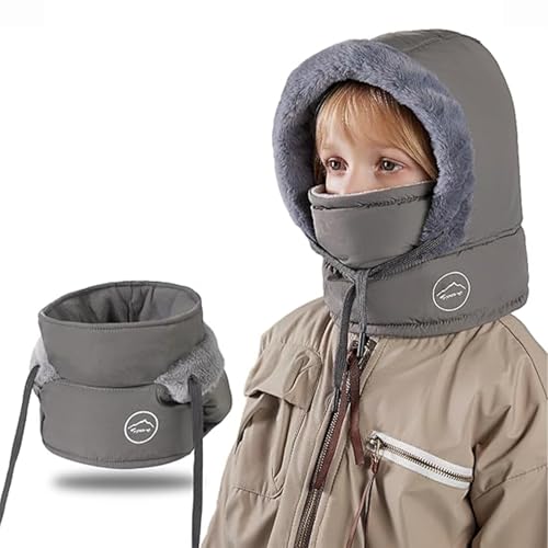 NLAND 3 in 1 Mignon Bébé Bonnet Echarpe Set Hiver Chaud Cagoule en Peluche Garçons Filles Epais Balaclava pour Outdoor Cyclisme Ski,Gris foncé