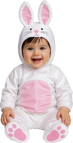 FIESTAS GUIRCA | Costume de Lapin Bébé (12-18 Mois) - Cagoule, Combinaison et Pieds - Costumes d'Animaux pour Carnaval, Halloween et Fêtes Costumées - Idéal pour Bébé Unisexe - Blanc et Rose