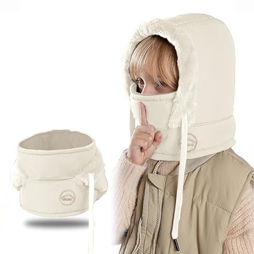 NLAND 3 in 1 Mignon Bébé Bonnet Echarpe Set Hiver Chaud Cagoule en Peluche Garçons Filles Epais Balaclava pour Outdoor Cyclisme Ski,Blanc cassé