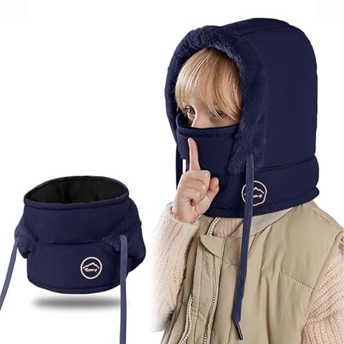 NLAND 3 in 1 Mignon Bébé Bonnet Echarpe Set Hiver Chaud Cagoule en Peluche Garçons Filles Epais Balaclava pour Outdoor Cyclisme Ski,Bleu Marine