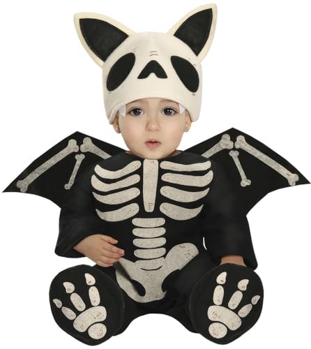 FIESTAS GUIRCA | Costume de Chauve-souris Squelette Bébé (18-24 Mois) - Aile, Cagoule, Combinaison et Pieds - Costumes d'Halloween et Fêtes de Costumes - Idéal pour Bébé Unisexe - Noir et Blanc