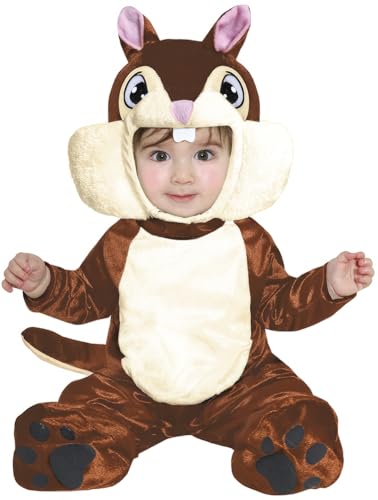 FIESTAS GUIRCA | Costume Écureuil Bébé (12-18 Mois) - Cagoule, Queue, Combinaison et Pieds - Costumes d'Animaux pour Halloween, Carnaval et Fêtes Costumées - Idéal pour Bébé Unisexe - Marron et Beige