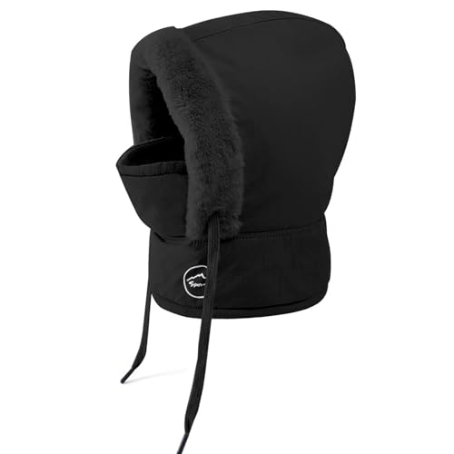 NLAND 3 in 1 Mignon Bébé Bonnet Echarpe Set Hiver Chaud Cagoule en Peluche Garçons Filles Epais Balaclava pour Outdoor Cyclisme Ski,Noir
