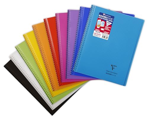 Clairefontaine 386601C Un Cahier à Spirale Koverbook - 24x32 cm - 160 Pages Petits Carreaux avec Marge - Papier Blanc 90 g - Couverture Polypro Couleur Aléatoire