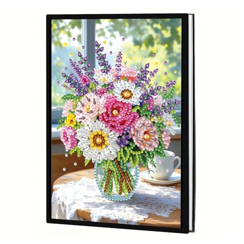 JICFDAO DIY Diamond Painting Carnet Fleurs 14.5X21cm 5D Cahier Broderie Diamant Peinture Diamant Carnet de Notes A5 Vierge Voyage Journal Intime pour École Bureau Cadeaux Créatifs pour Étudiants Amis