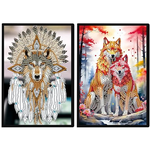 JISHSHAY 2 Pack Diamond Painting Carnet de Notes Loup Diamant Painting Cahier Feuille Blanche Loup Broderie Diamant Bloc Note Bricolage Adulte Journal Broderie Carnet A5 Point de Croix Notebook