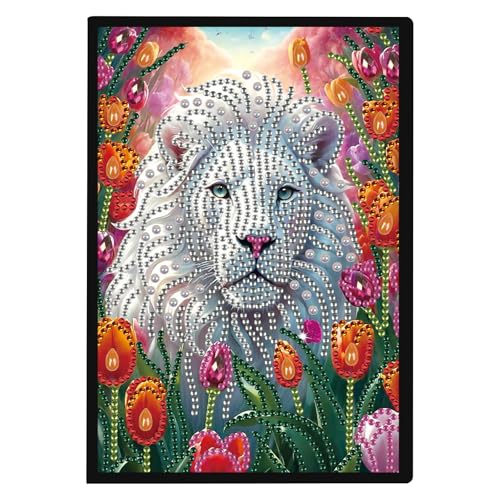 JISHSHAY Diamond Painting Carnet de Notes Lion Diamant Painting Cahier Feuille Blanche Fleur Broderie Diamant Bloc Note Bricolage Adulte Journal Kit Broderie Carnet A5 Point de Croix Notebook