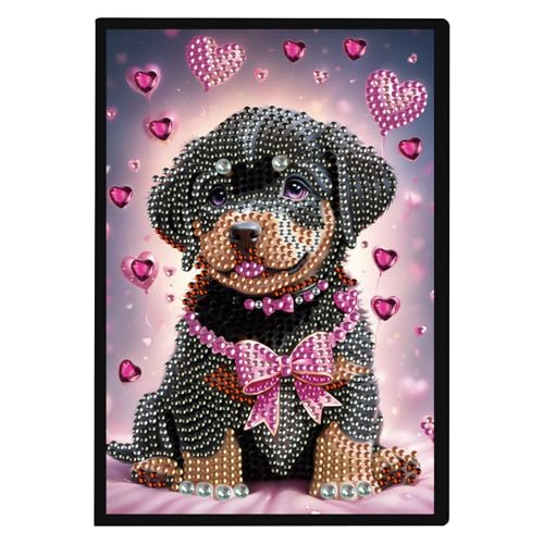 JISHSHAY Diamond Painting Carnet de Notes Chien Diamant Painting Cahier Feuille Blanche Animal Broderie Diamant Bloc Note Bricolage Adulte Journal Kit Broderie Carnet Point de Croix Notebook A5