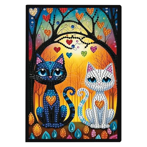 JISHSHAY Diamond Painting Carnet de Notes Chat Diamant Painting Cahier Feuille Blanche Cœur Broderie Diamant Bloc Note Bricolage Adulte Journal Kit Broderie Carnet A5 Point de Croix Notebook