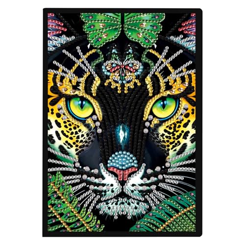 JISHSHAY Diamond Painting Carnet de Notes Guépard Diamant Painting Cahier Feuille Blanche Animal Broderie Diamant Bloc Note Bricolage Adulte Journal Kit Broderie Carnet Point de Croix Notebook A5