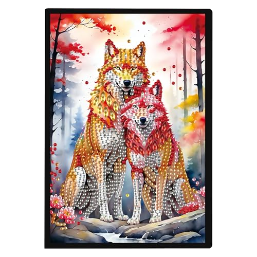 JISHSHAY Diamond Painting Carnet de Notes Loup Diamant Painting Cahier Feuille Blanche Animal Broderie Diamant Bloc Note Bricolage Adulte Journal Kit Broderie Carnet Point de Croix Notebook A5