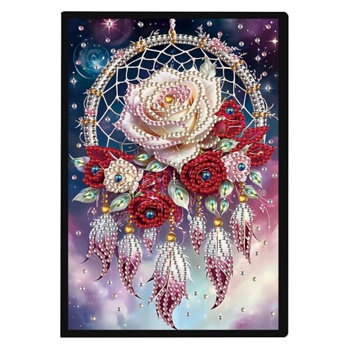 JISHSHAY Diamond Painting Carnet de Notes Attrape Rêves Diamant Painting Cahier Feuille Blanche Fleur Broderie Diamant Bloc Note Bricolage Adulte Journal Kit Broderie Carnet Point de Croix Notebook A5