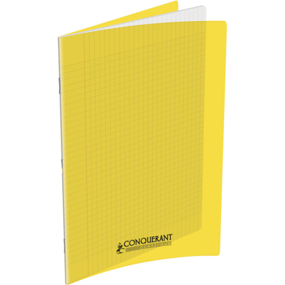CONQUERANT C9 Cahier piqûre 17x22cm 48 pages 90g grands carreaux Seyès. Couverture polypropylène Jaune