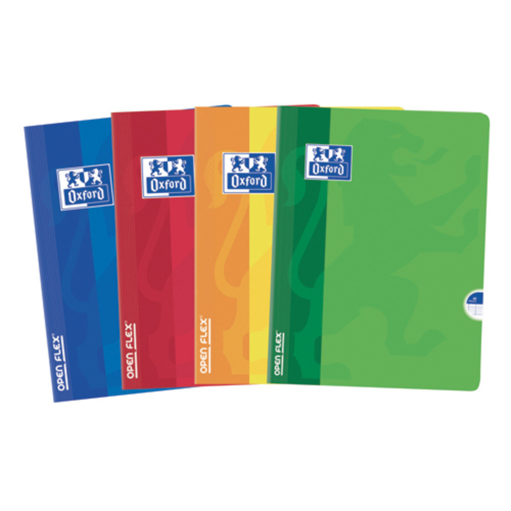 OXFORD Cahier piqûre OpenFlex polypropylène 96 pages 24x32 cm grands carreaux Seyès. Coloris assortis pas