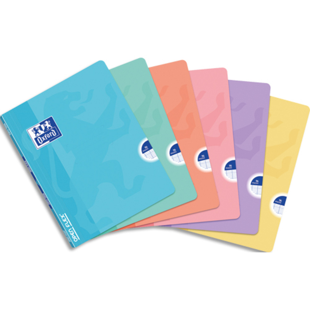 OXFORD Cahier piqûre OpenFlex polypropylène 96 pages 17x22 cm grands carreaux Seyès. Coloris assortis pas
