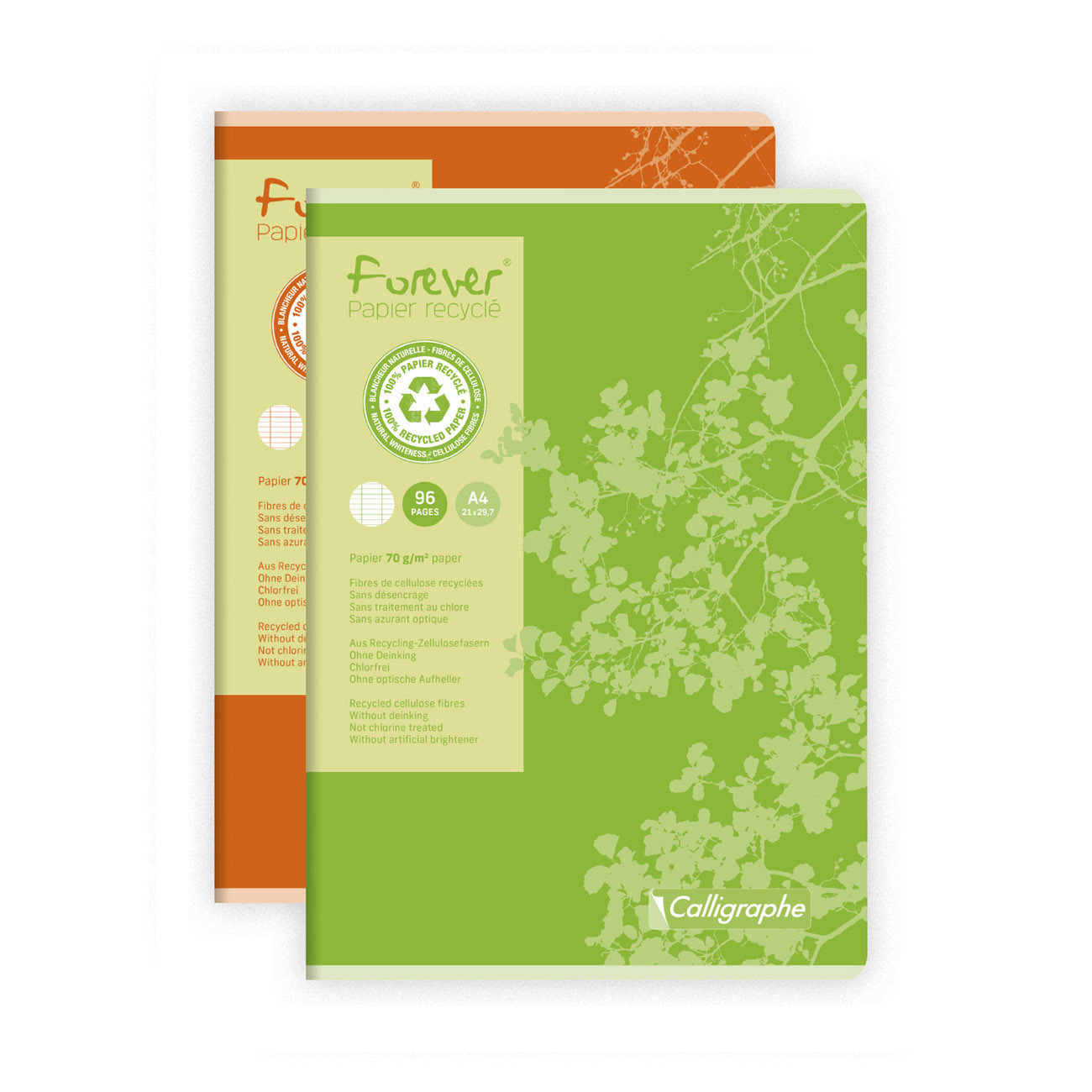 Calligraphe Cahier piqué Forever A4 21 x 29,7 cm - 70g - Papier recyclé & certifié - Grands carreaux Séyès - 96 pages