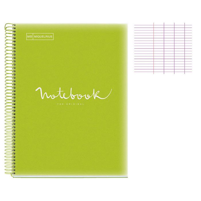 Cahier - A4 (21x297cm) - Grands carreaux - 80 pages - couverture en polypro vert citron - à spirale - Notebook Miquelrius