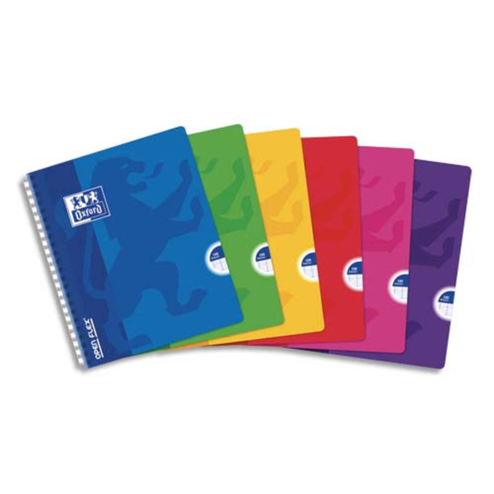 Oxford OpenFlex Lot de 5 Cahier à spirales Grands carreaux Seyès 100 pages 24 x 32 Couleurs Assorties
