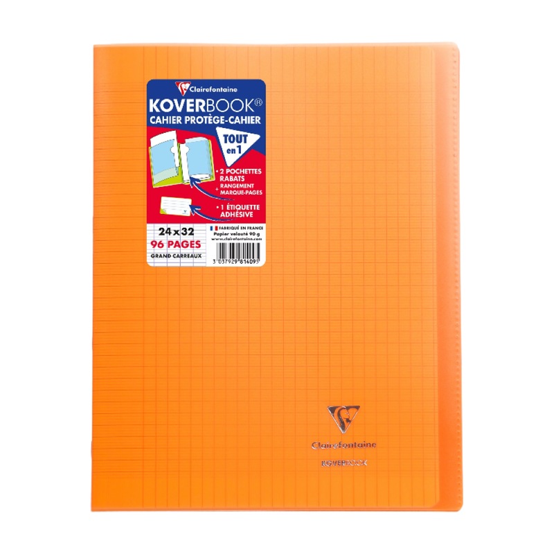 CLAIREFONTAINE Koverbook Cahier protège-cahier piqué polypro orange, 96 pages - 24 x 32 cm