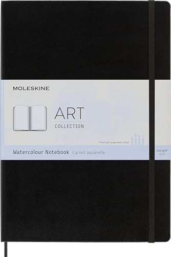 Moleskine Cahier Aquarelle A4, Cahier d'aquarelle Classique, Papier pour Crayons et Peintures Aquarelle, Couverture Rigide et Fermeture Elastique, Format A4 21 x 29.7 cm, Couleur Noir, 60 Pages