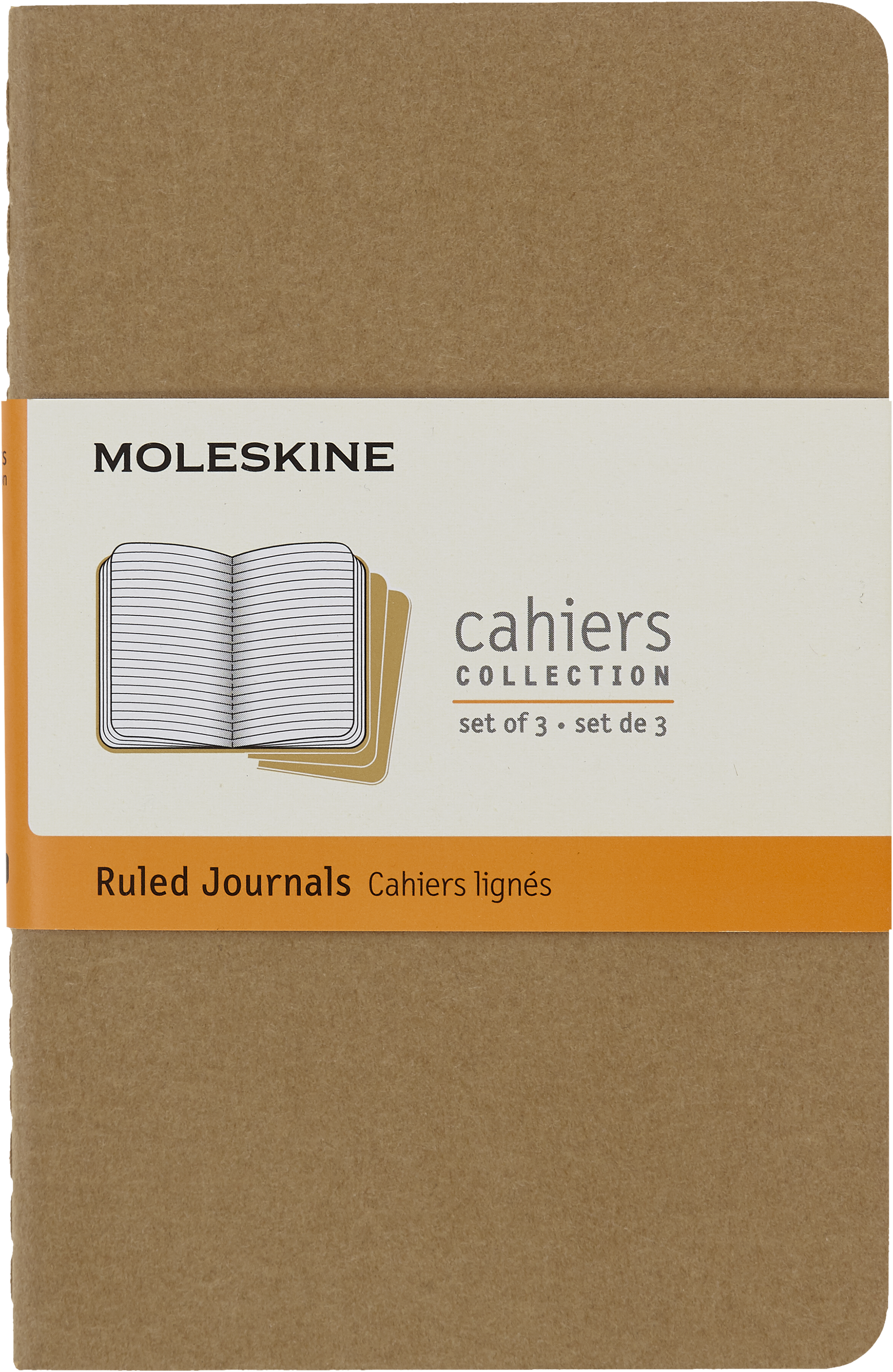 Moleskine - Cahier Journal - Ensemble de 3 Carnets avec Pages Ligné - Couverture en Carton et Piqûres de Coton Apparentes - Couleur Kraft - Taille Format de Poche 9 x 14 cm - 80 Pages