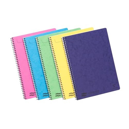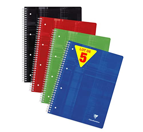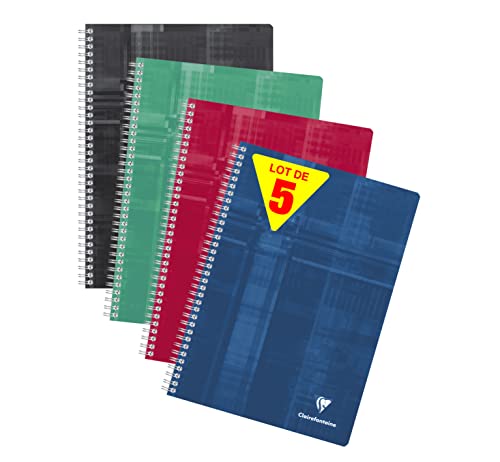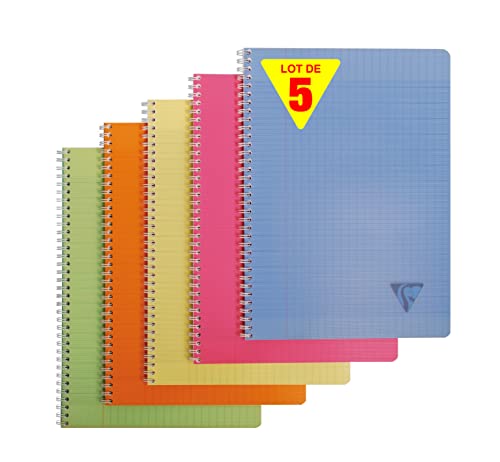 Clairefontaine 68162C Lot de 5 Cahiers à Spirale - A4 21x29,7 cm - 180 Pages Petits Carreaux - Papier Blanc 90 g - Couverture Carte Pelliculée - Couleurs Aléatoires