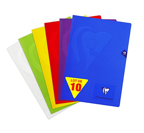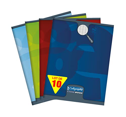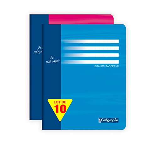 Calligraphe 108712C Lot de 10 Cahiers Agrafés (une Marque de Clairefontaine) - 17x22 cm - 48 Pages Grands Carreaux - Papier Blanc 90 g - Couverture Carte Recyclée Pelliculée - Couleurs Aléatoires