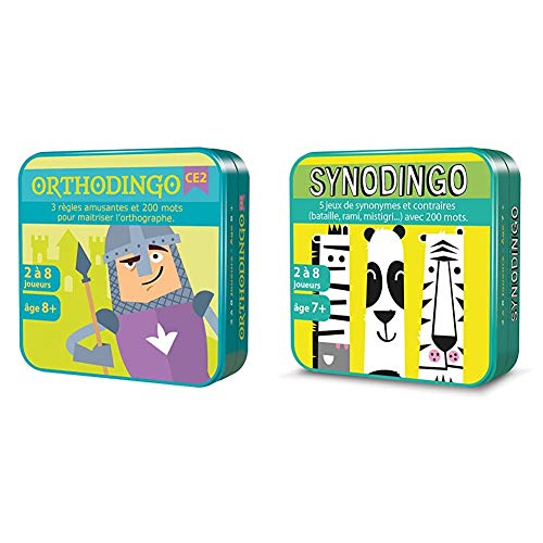 Aritma | Lot 1 Jeu Educatif OrthoDingo + 1 SynoDingo | pour Enfants Niveau CE2 | Cahiers de Vacances dès 7 Ans | Jeu de Société | Apprendre en S'Amusant | 2 à 8 Joueurs | 10-15 Min