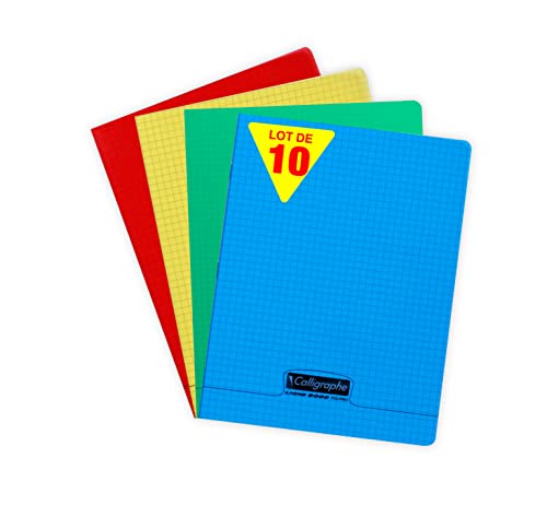 Calligraphe 18042C Lot de 10 Cahiers Agrafés (une Marque de Clairefontaine) - 17x22 cm - 96 Pages Petits Carreaux - Papier Blanc 90 g - Couverture Polypro Transparent - Couleurs Aléatoires