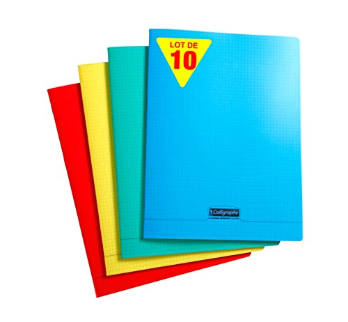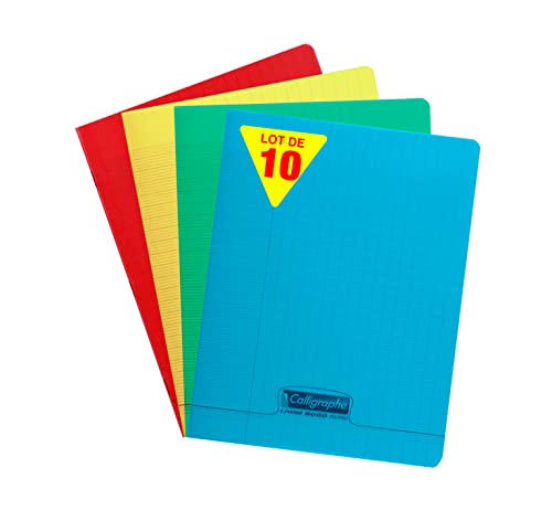 Calligraphe 18065C Lot de 10 Cahiers Agrafés (une Marque de Clairefontaine) - 24x32 cm - 48 Pages Petits Carreaux - Papier Blanc 90 g - Couverture Polypro Transparent - Couleurs Aléatoires
