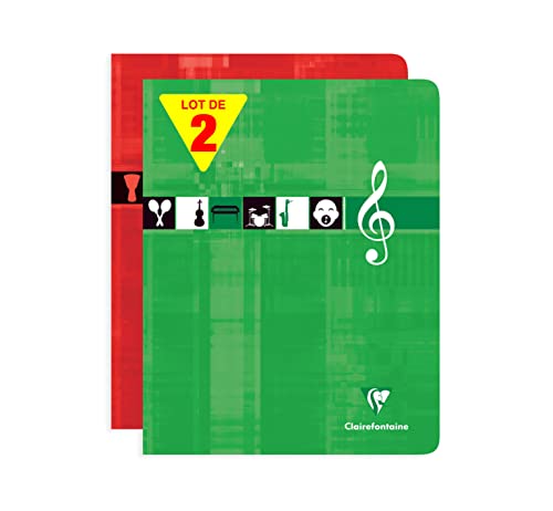 Clairefontaine 63797AMZC Lot de 2 Cahiers Agrafés de Musique et Chants - 17x22 cm - 56 Pages Grands Carreaux et Portées avec lignes - Papier Blanc 90g - Couverture Carte Pelliculée Couleurs Aléatoires