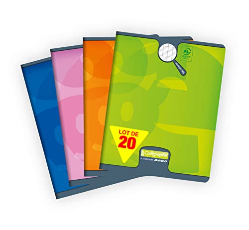 Calligraphe 108708C Lot de 20 Cahiers Agrafés (une Marque de Clairefontaine) - 17x22 cm - 32 Pages Grands Carreaux - Papier Blanc 90 g - Couverture Carte Recyclée Pelliculée - Couleurs Aléatoires