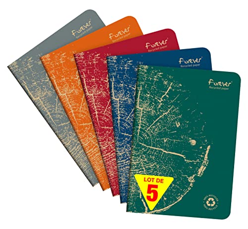 Clairefontaine 68486C Lot de 5 Cahiers Agrafés Collection Forever Agrafé 100% Recyclé - A5 14,8x21 cm - 96 Pages Lignées - Papier Recyclé Blanc 90 g - Couverture Carte Recyclée - Couleurs Aléatoires