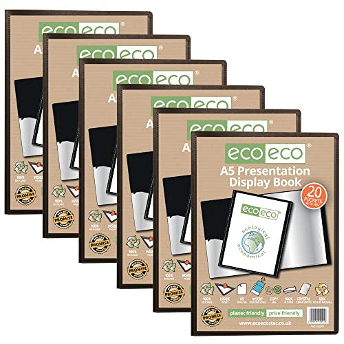 eco-eco Lot de 6 cahiers de présentation A5 50% recyclés avec 20 pochettes en plastique Noir