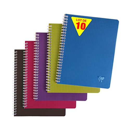 Clairefontaine 329725C Collection Linicolor Intensive Lot de 10 Cahiers à Spirale - 17x22 cm - 100 Pages Petits Carreaux - Papier Blanc 90 g - Couverture Polypro - Couleurs Aléatoires Intensive