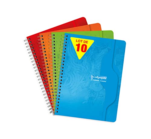 Calligraphe 7123C Lot de 10 Cahiers Agrafés (une Marque de Clairefontaine) - A4 21x29,7 cm - 96 Pages Grands Carreaux - Papier Blanc 70 g - Couverture Carte Recyclée Vernie - Couleurs Aléatoires