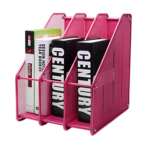 EXERZ Porte-revues de Bureau/Range-revues/Porte-Magazine en métal à Trois rangées/Boîte de Rangement en métal -3 Compartiments Cahiers/Dossier/Organisateur (Rose)
