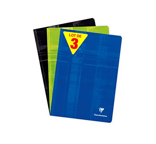 Clairefontaine 631662AMZC Lot de 3 Cahiers Agrafés - A4 21x29,7 cm - 96 Pages Petits Carreaux - Papier Blanc 90 g - Couvertures Carte Couleurs Aléatoires