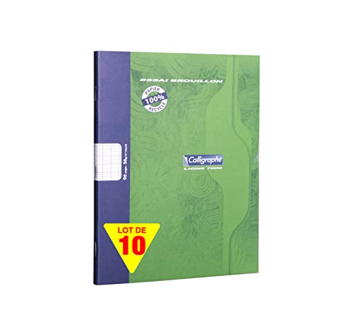 Calligraphe 2196C Lot de 10 Cahiers de Brouillon Agrafés Verts (une Marque de Clairefontaine) - 17x22 cm - 96 Pages Grands Carreaux - Papier 56 g 100% Recyclé - Couverture Carte Offset