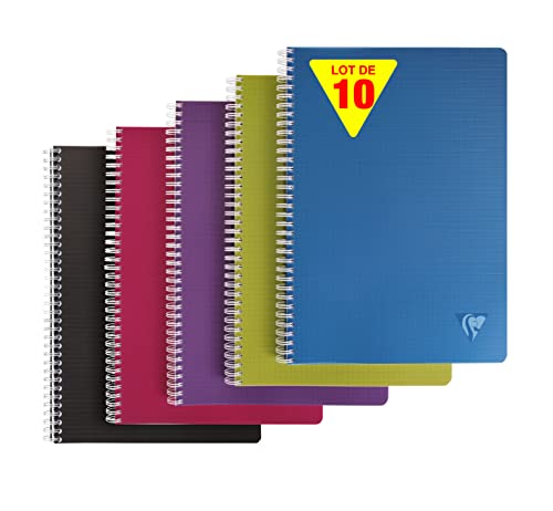 Clairefontaine 68142C Lot de 10 Cahiers à Spirale - A4 21x29,7 cm - 100 Pages Petits Carreaux - Papier Blanc 90 g - Couverture Carte Pelliculée - Couleurs Aléatoires